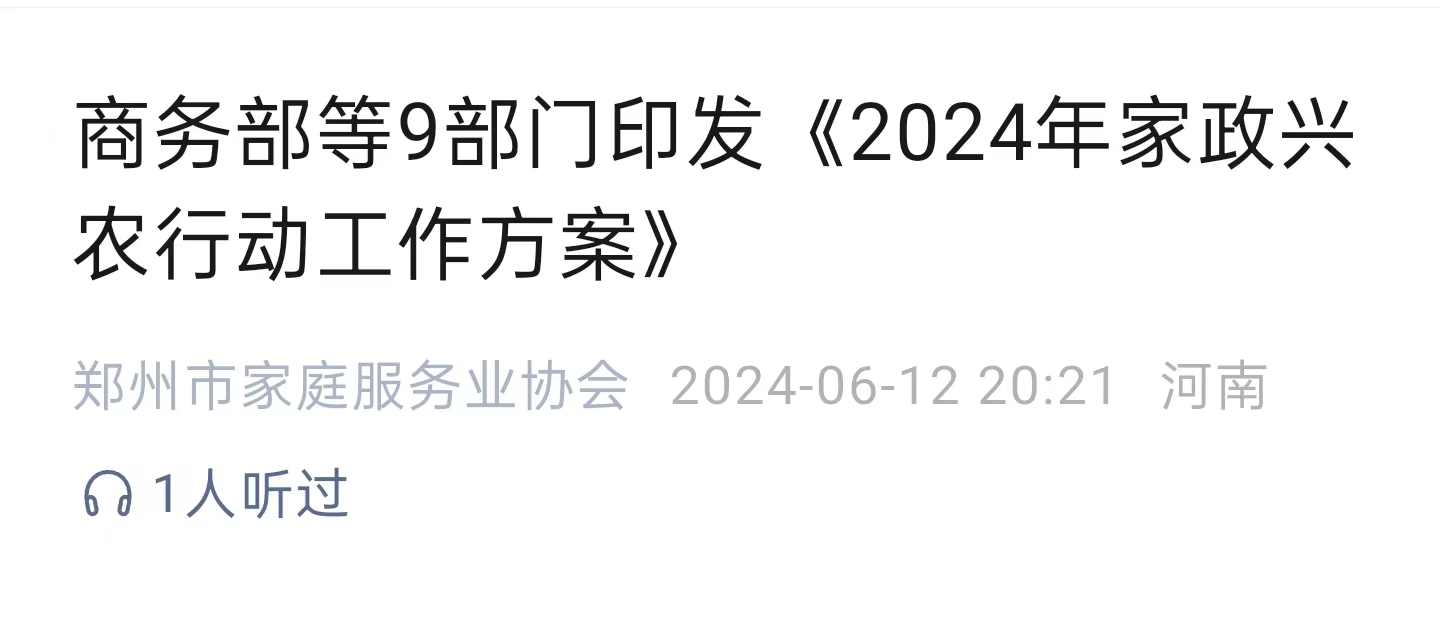 商務(wù)部等9部門印發(fā)(2024年家政興農(nóng)行動(dòng)工作方案)