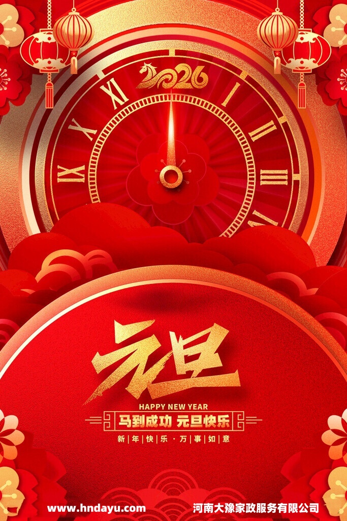 律回春暉漸,萬象始更新。值此2026年元旦佳節(jié)來臨之際,河南大豫家政服務(wù)有限公司向大家致以最誠(chéng)摯的問候和最美好的新年祝福!