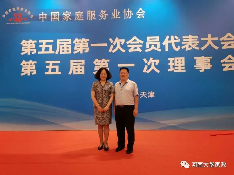 2020年8月17日,中國(guó)家庭服務(wù)業(yè)協(xié)會(huì)第五屆第一次會(huì)員代表大會(huì)在天津市中北假日酒店四樓會(huì)議廳召開,河南大豫家政服務(wù)有限公司董事長(zhǎng)王德重參加代表大會(huì),經(jīng)會(huì)員代表大會(huì)選舉為監(jiān)事,和中國(guó)家協(xié)第五屆理事會(huì)新任會(huì)長(zhǎng)王淑霞合影留念。