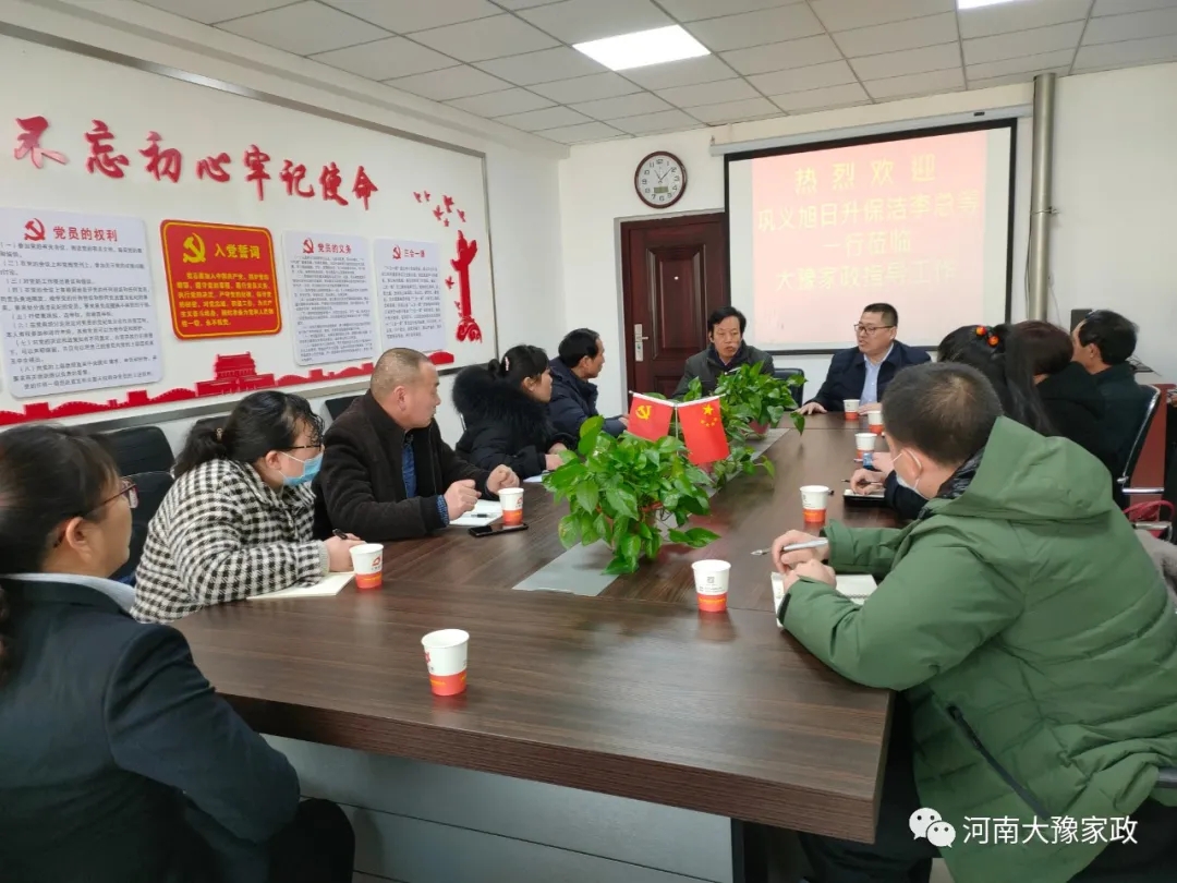 2021年1月13日上午,鞏義旭日升保潔李總等一行蒞臨大豫集團(tuán)指導(dǎo)工作,交流學(xué)習(xí),大豫集團(tuán)董事長王德重攜總部管理人員熱情接待,并就家政保潔行業(yè)溝通交流。