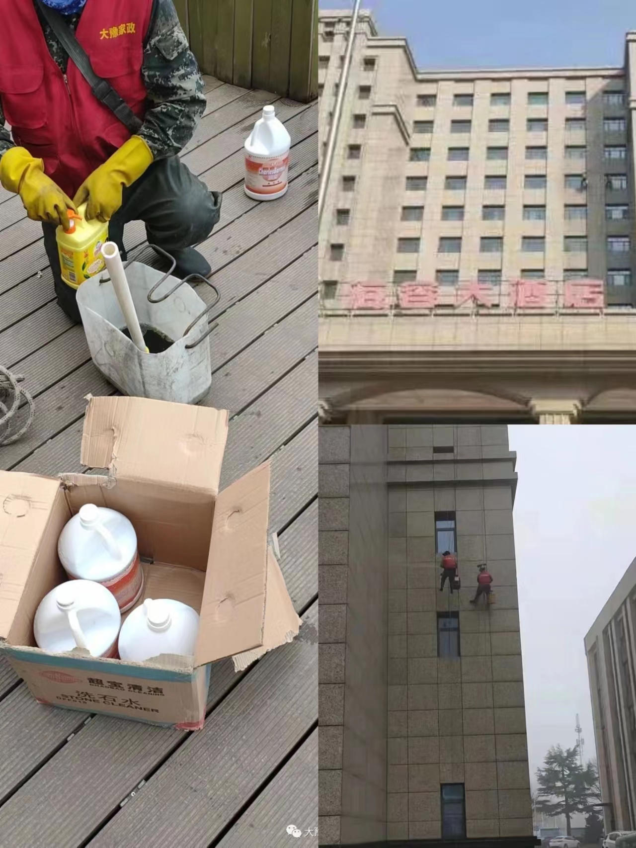 2022年3月14日,大豫家政員工在海容大酒店清洗外墻及玻璃保潔。專業(yè)的服務(wù)獲得了甲方的好評(píng)。