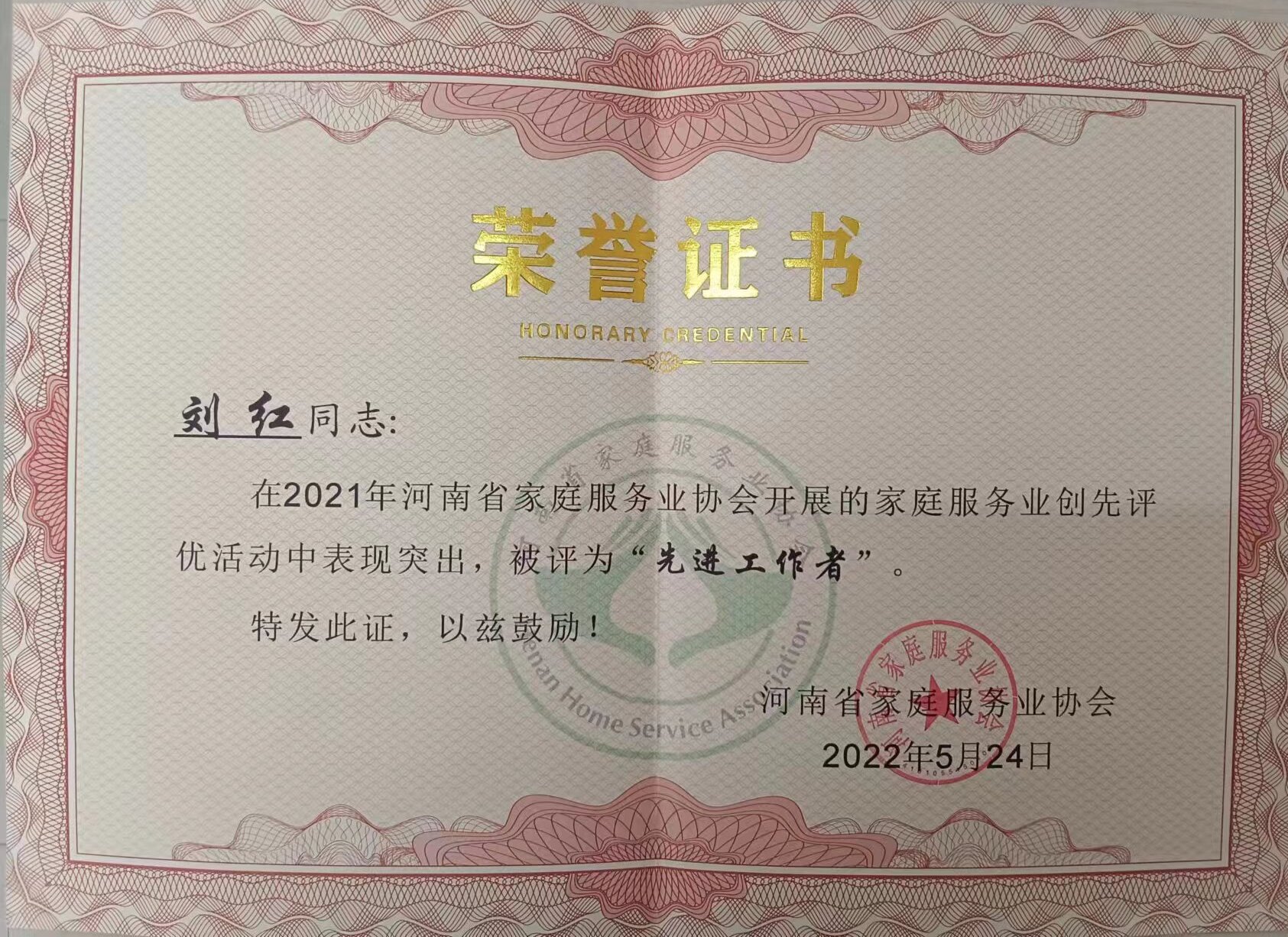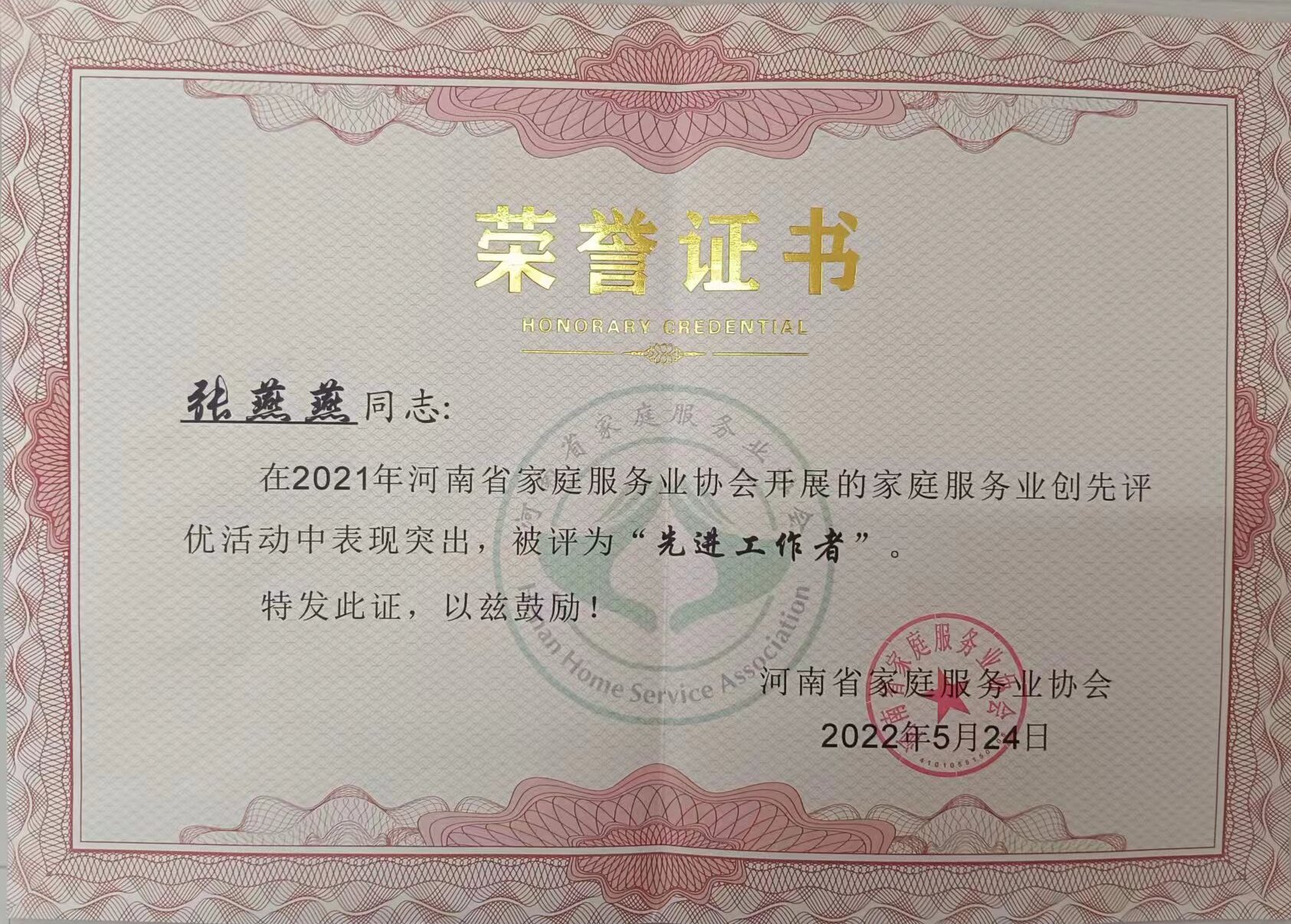 2、河南省家庭服務(wù)業(yè)協(xié)會榮譽