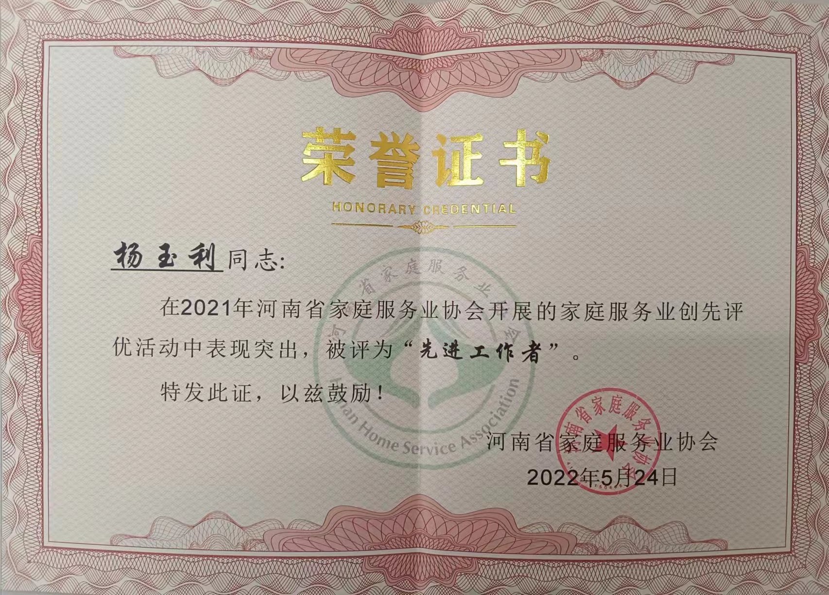 大豫家政員工楊玉利、劉紅、張燕燕被河南省家庭服務(wù)業(yè)協(xié)會評為:“先進工作者”。