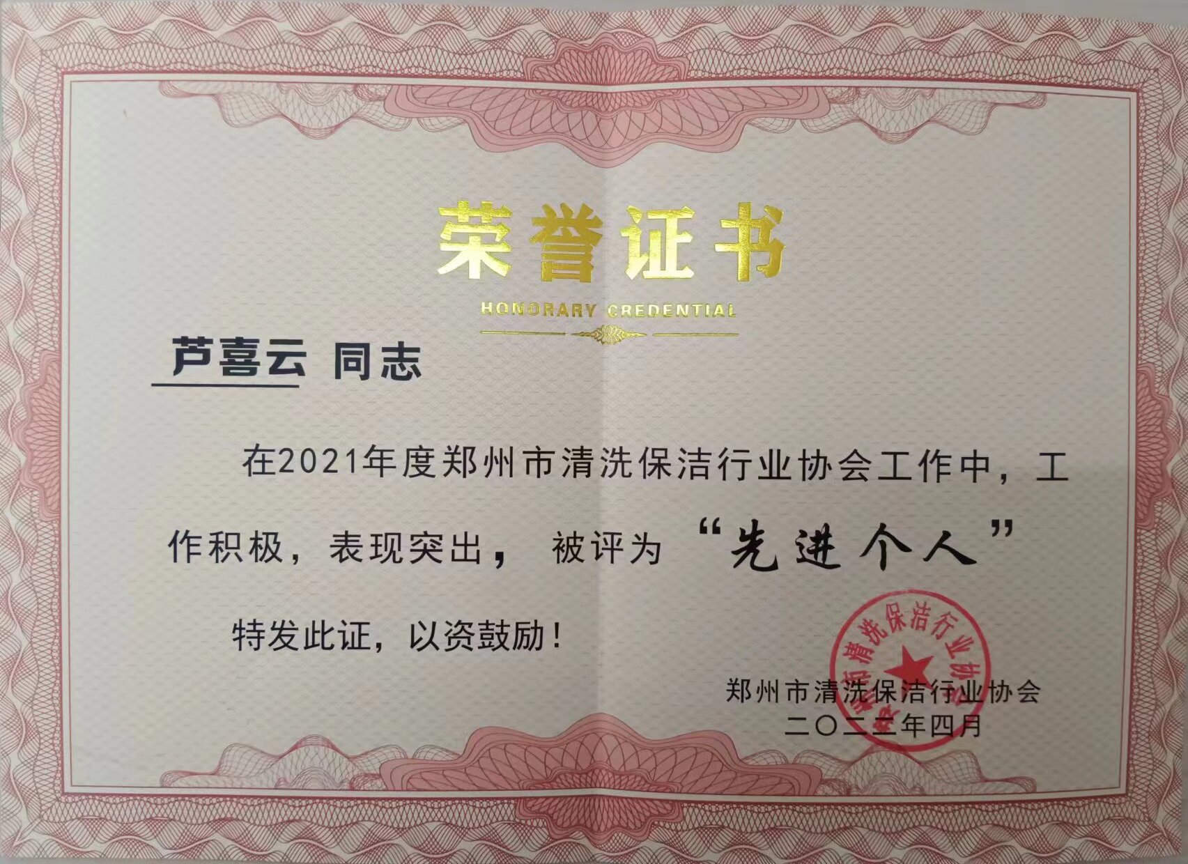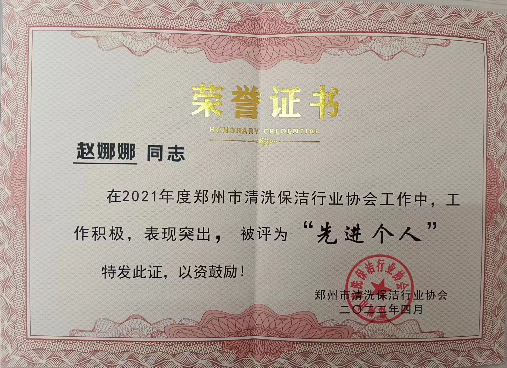 4、鄭州市清洗保潔行業(yè)協(xié)會榮譽