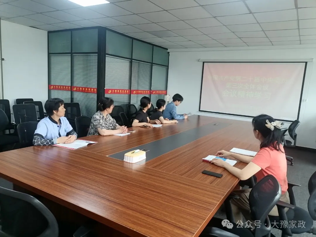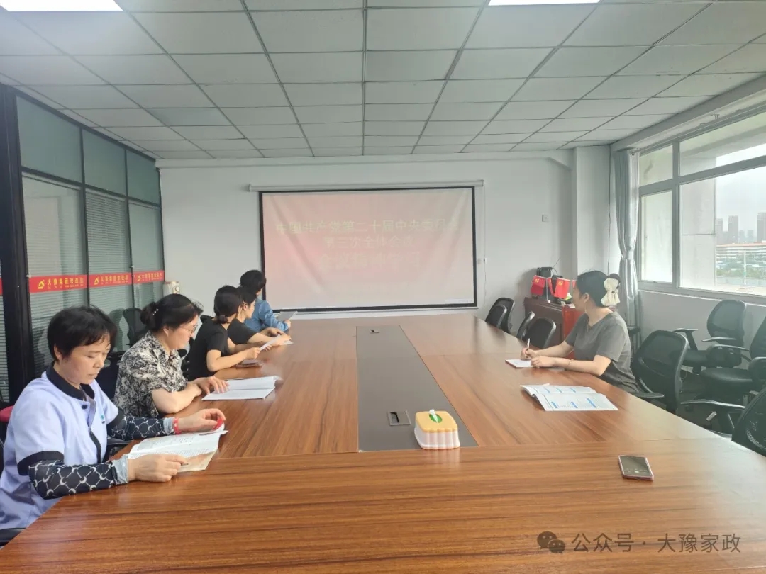 黨的二十屆三中全會勝利閉幕后,大豫家政高度重視,迅速行動。組織員工學(xué)習(xí),深入研讀全會精神,深刻領(lǐng)會進(jìn)一步全面深化改革、推進(jìn)中國式現(xiàn)代化的重大意義和總體要求。